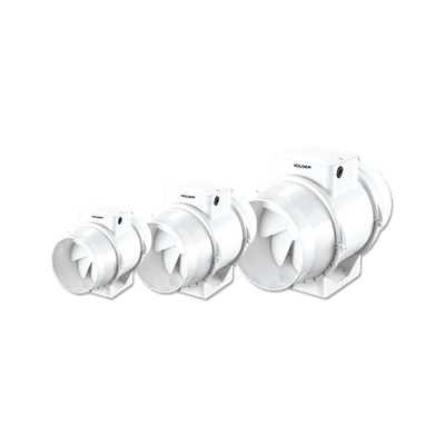 Voldam Mixed Flow In-Line Fans are designed for residential and light commercial ventilation applications. These compact, powerful and quiet fans feature a durable and a two speed motor energy efficient.